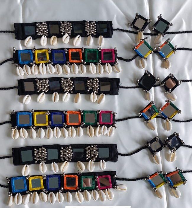 Elevate your festive style with this Handmade Jewellery Online exclusive. Designed with mirror work, colorful thread, and small ghughri embellishments, this handcrafted necklace set brings a perfect blend of tradition and trend.